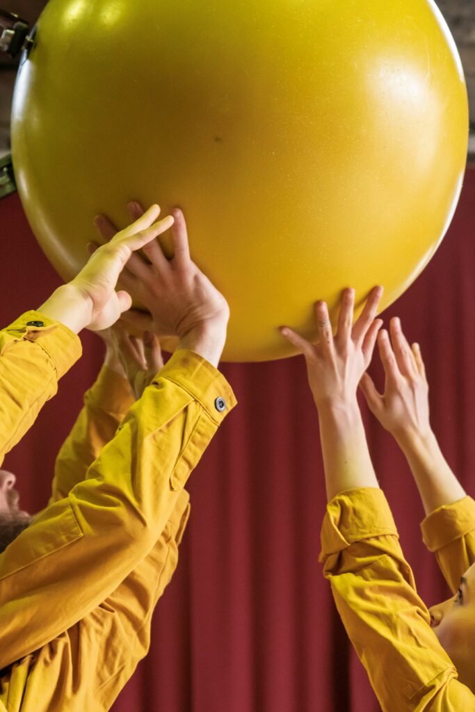 Le projet : Duo d’acro danseuses pour l’espace public avec une boule sonore interactive – durée 35 minutes.